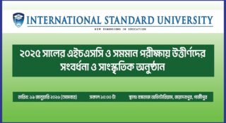 এইচএসসি ও সমমান পরীক্ষায় ২০২৫ সালে উত্তীর্ণ শিক্ষার্থীদের সম্মানে বর্ণিল সংবর্ধনা অনুষ্ঠানের আয়োজন করেছে ইন্টারন্যাশনাল স্ট্যান্ডার্ড ইউনিভার্সিটি (আইএসইউ)। আগামী ১৯ জানুয়ারি ২০২৬ (সোমবার) সকাল ১০টা থেকে জয়দেবপুরের বঙ্গতাজ অডিটোরিয়ামে দিনব্যাপী বিস্তারিত