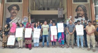 শিক্ষক নিয়োগের দাবিতে ইবির চারুকলা বিভাগের মানববন্ধন