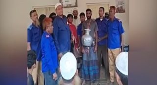 মা ছাগলের মাংস খেতে চাওয়ায় নিজ ছেলে মারধর করায় স্থানীয় ইউনিয়ন পরিষদ চেয়ারম্যান বরাবর মৌখিক অভিযোগ দিলে ইউপি চেয়ারম্যান এবং স্থানীয়রা অভিযুক্ত যুবককে ধরে এনে গলায় পানির কলস ঝুলিয়ে শাস্তিস্বরুপ বিস্তারিত