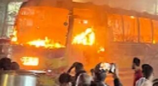 বাড্ডায় যাত্রীবাহী বাসে আগুন