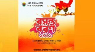 ‘ফাগুনের রঙে রাঙিয়ে দেই প্রাণ, গানে আর আনন্দে বরণ করি’ এ স্লোগানে ‘বসন্তকে’ বরণ করে নিতে প্রস্তুতি নিয়েছে স্টেট ইউনিভার্সিটি অব বাংলাদেশ। বিশ্ববিদ্যালয়টির কালচারাল ক্লাব আয়োজন করছে ‘বসন্ত উৎসব ১৪৩১’। বিস্তারিত
